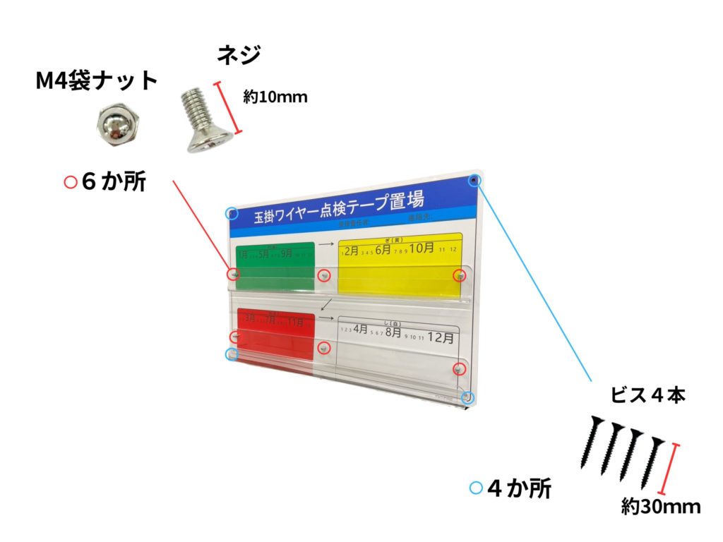 | 用途 | 朝礼看板の玉掛ワイヤー点検テープ置場に |
